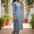 Blue printed Kurta with Trousers