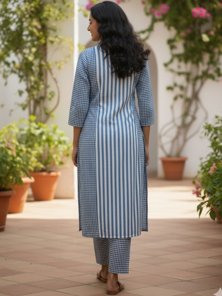 Blue printed Kurta with Trousers