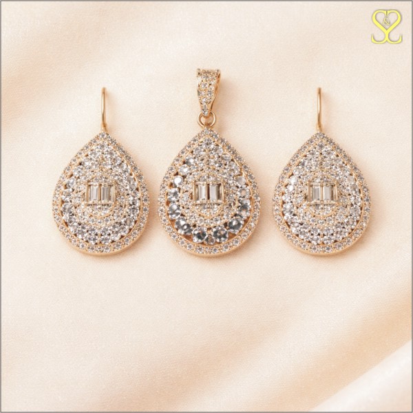 - Design: Elegant teardrop shape with detailed stone embellishments