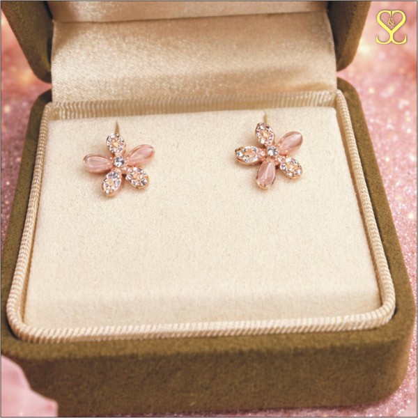 Beautiful flower-shaped studs with soft pink stones and sparkling zircon detailing – perfect for a classy feminine look. -