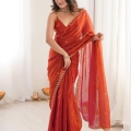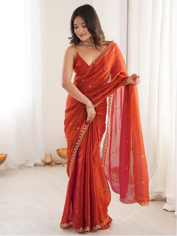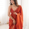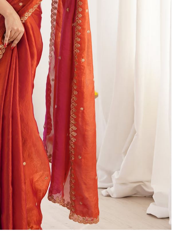 Women’s Paper Silk Copper Embellished Designer Saree With Unstitched Blouse