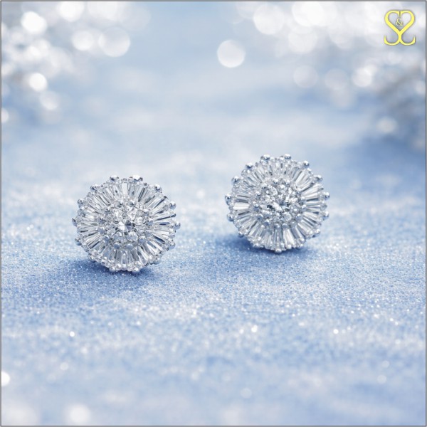 Add a touch of brilliance to your jewelry collection with these 92.5 Sterling Silver Sunburst Cluster Stud Earrings. Designed with a radiating floral/sunburst pattern, these earrings feature a cluster of shimmering stones that reflect light beautifully from every angle.
