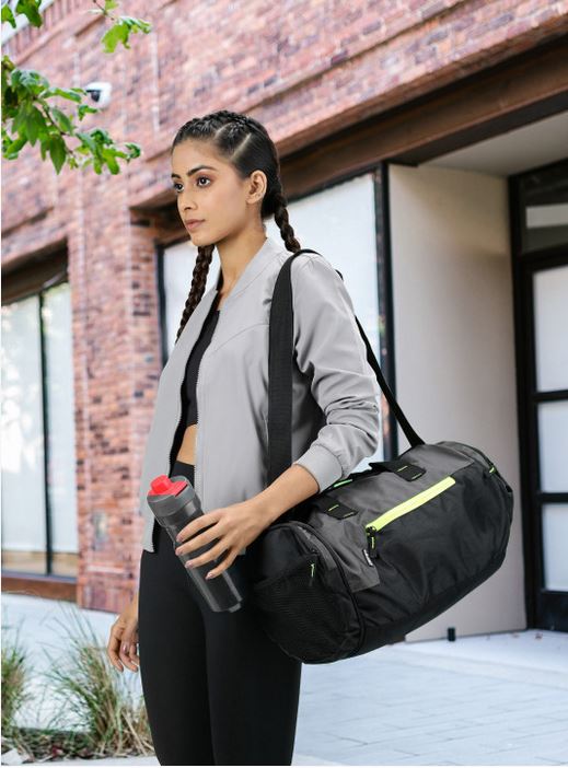 Black and grey colour blocked duffel bag